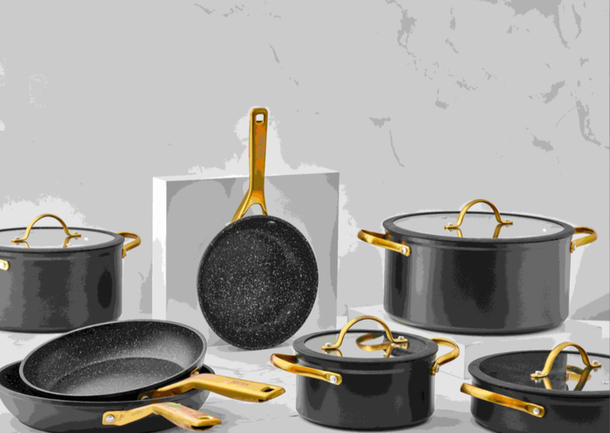 Например, кастрюля на 7.9 литров сейчас по цене 165 шек. вместо 549, сотейник - за 90 шек. вместо 299 и т.д.