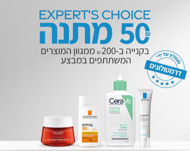 Сейчас при покупке косметики, рекомендуемой дерматологами, на сумму от 200 шек.- получайте 50 шек. в подарок.